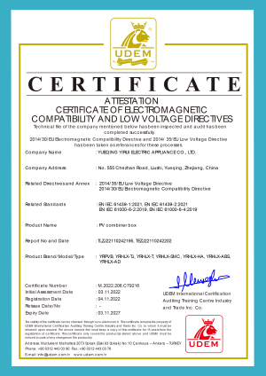 CÔNG TY TNHH NĂNG LƯỢNG MỚI ZHEJIANG YRO là nhà sản xuất đáng tin cậy các linh kiện bảo vệ (CB DC, cầu chì, bộ bảo vệ quá áp, công tắc cách ly, đầu nối năng lượng mặt trời, v.v.) cho các hệ thống quang điện trên toàn cầu. Kinh nghiệm 10 năm làm việc trong ngành điện cho phép chúng tôi tạo ra các linh kiện DC năng lượng mặt trời tuân thủ các tiêu chuẩn DC mới nhất. Chất lượng là mục tiêu chính trong mỗi sản phẩm của chúng tôi bởi vì điều này dẫn đến hiệu suất và độ an toàn tốt nhất cho bất kỳ hệ thống năng lượng mặt trời nào. Cam kết chất lượng của chúng tôi đã nâng cao nhận thức về thương hiệu của công ty bạn. Để đạt được mục tiêu của mình, nhà máy của chúng tôi tuân thủ các tiêu chuẩn CB, CE, TUV, ISO9001 và RoHS.